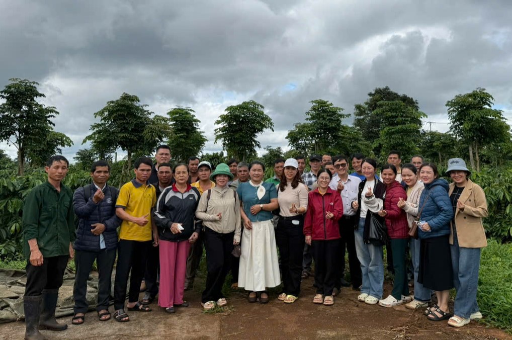 Tham gia lớp tập huấn, 30 học viên là thành viên của các tổ khuyến nông cộng đồng được truyền tải nội dung cơ bản về các hình thức hợp tác, liên kết trong xây dựng vùng nguyên liệu cà phê bền vững ở Tây Nguyên; ứng dụng chuyển đổi số trong phát triển vùng nguyên liệu cà phê bền vững. Bên cạnh đó, các học viên được hướng dẫn tham quan thực tế 2 mô hình trồng xen cây ăn quả trong vườn cà phê và trồng cà phê giống mới thích ứng biến đổi khí hậu.