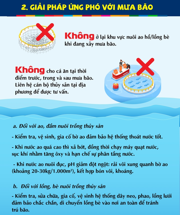 Để chủ động và bảo vệ có hiệu quả cho thủy sản nuôi, hạn chế thấp nhất thiệt hại tromg mùa bão và mưa lũ, bà con nông dân cần lưu ý: