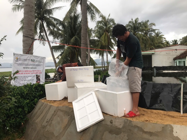 Mô hình tại hộ dân ông Nguyễn Đình Trọng (Xã Mỹ Thắng, huyện Phù Mỹ, tỉnh Bình Định) với quy mô 450 m3 nước, nuôi giai đoạn 1 thể tích 80 m3, mật độ thả 75 con/m3, số lượng cá thả 6.000 con.