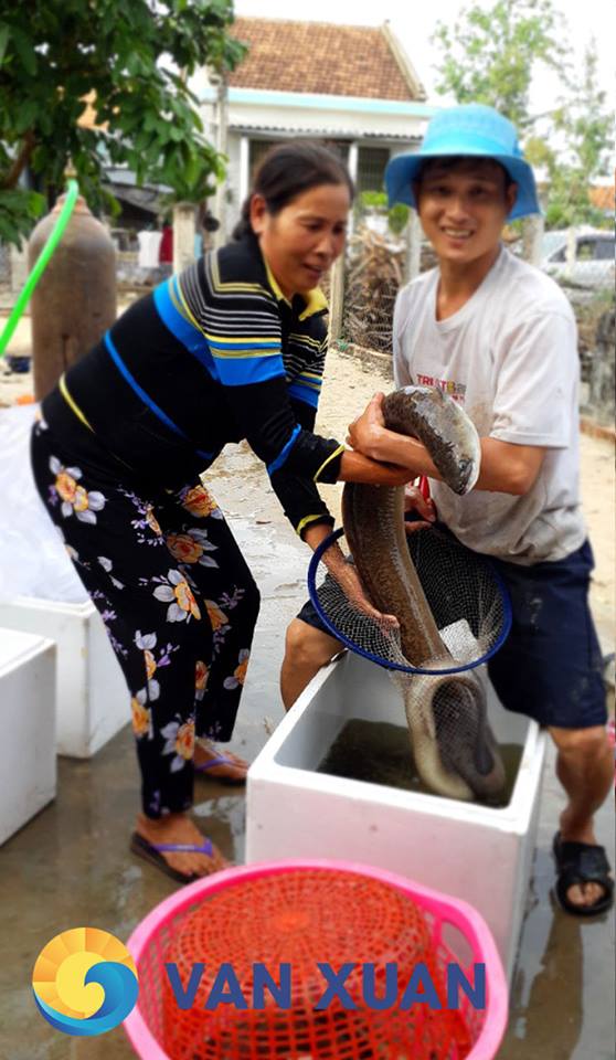 Thả cá chình hoa giống tại hộ dân Nguyễn Đình Trọng