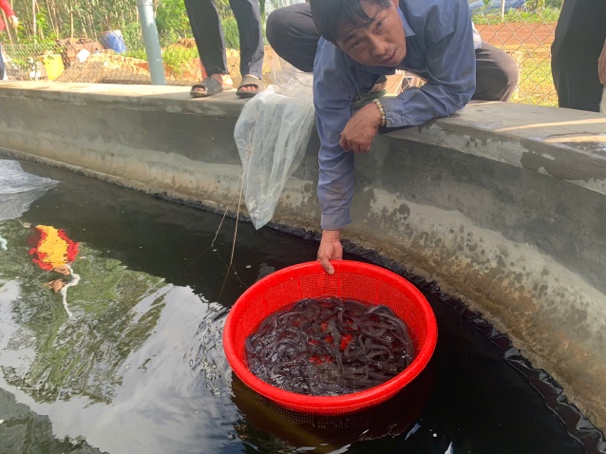 Thả cá chình hoa giống tại hộ dân Nguyễn Đình Trọng - Xã Mỹ Thắng, huyện Phù Mỹ, tỉnh Bình Định