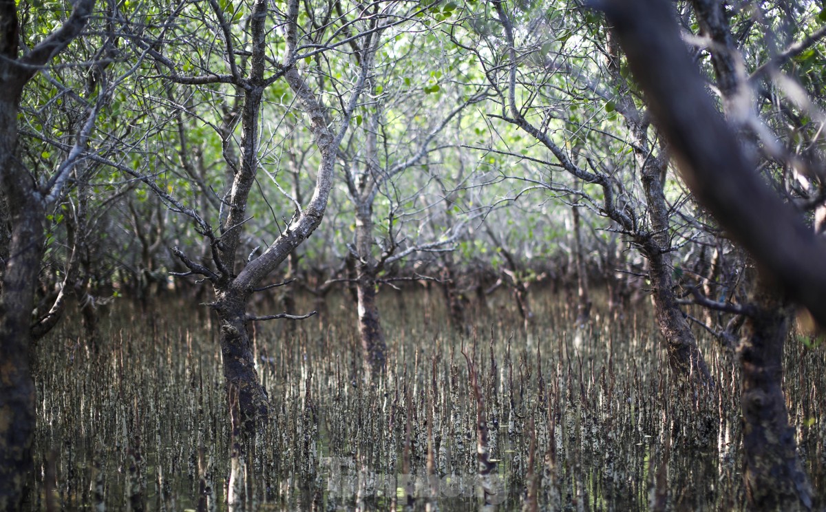 Thủy triều rút dần làm lộ lên những bãi bồi dưới tán rừng ngập mặn. Đi vào giữa rừng, chúng tôi có cảm giác như đang lạc giữa các vườn sinh thái ở miền Tây sông nước. Trước mắt, những khoảnh rừng xanh ngắt, tiếng chim kêu vang vọng, tạo nên một khung cảnh thật bình yên. Chạy dọc các nhánh sông, cũng là thời điểm các ghe tàu của ngư phủ bắt đầu chuẩn bị cho chuyến mưu sinh về đêm.