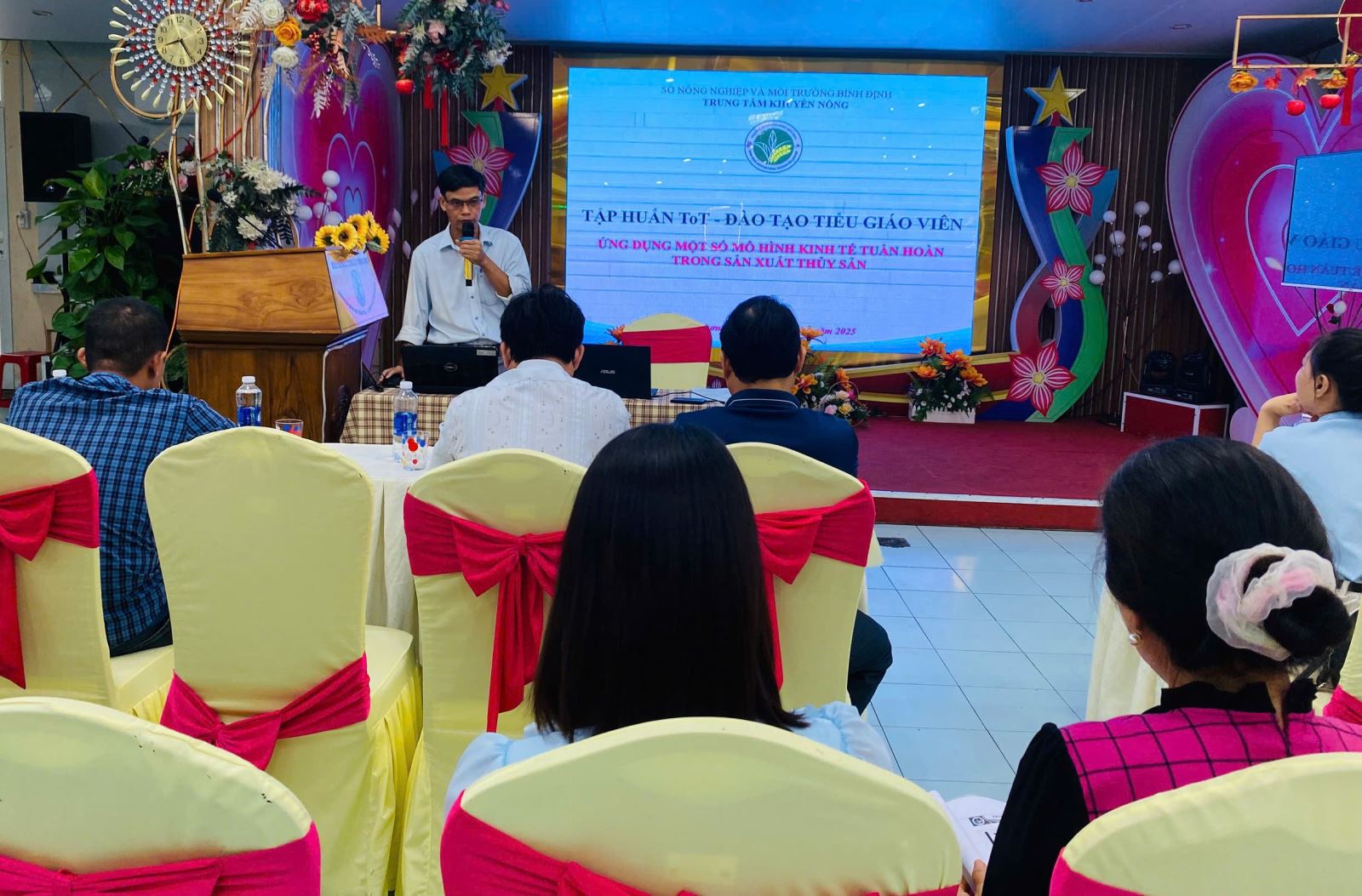 Ứng dụng mô hình kinh tế tuần hoàn trong sản xuất thủy sảnTrong 2 ngày 14–15/5, tại thành phố Quy Nhơn, Trung tâm Khuyến nông Bình Định tổ chức lớp tập huấn “Đào tạo tiểu giáo viên” (ToT) về ứng dụng một số mô hình kinh tế tuần hoàn trong sản xuất thủy sản. Tham dự lớp học có 30 học viên là cán bộ kỹ thuật, khuyến nông viên và cộng tác viên khuyến nông đến từ các huyện Phù Mỹ, Phù Cát, Tuy Phước, thị xã Hoài Nhơn và thành phố Quy Nhơn. |