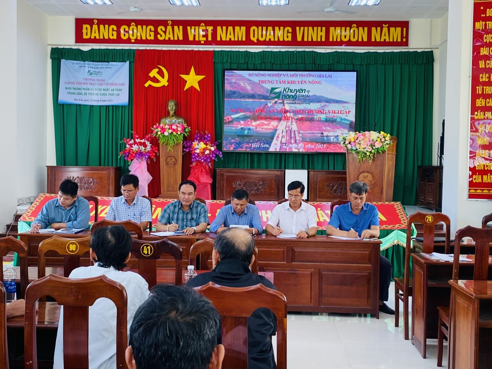Trao đổi trực tiếp với nông dân về kỹ thuật nuôi cá điêu hồng trong lồng, bè theo hướng an toàn thực phẩmSáng ngày 22.8, tại xã Hội Sơn, Trung tâm Khuyến nông Gia Lai phối hợp với UBND xã tổ chức chương trình gặp gỡ, trao đổi kỹ thuật nuôi cá điêu hồng trong lồng, bè trên hồ chứa thủy lợi theo hướng an toàn thực phẩm với 70 hộ nuôi trồng thủy sản đến từ 3 xã: Hội Sơn, Ngô Mây và Đề Gi. |