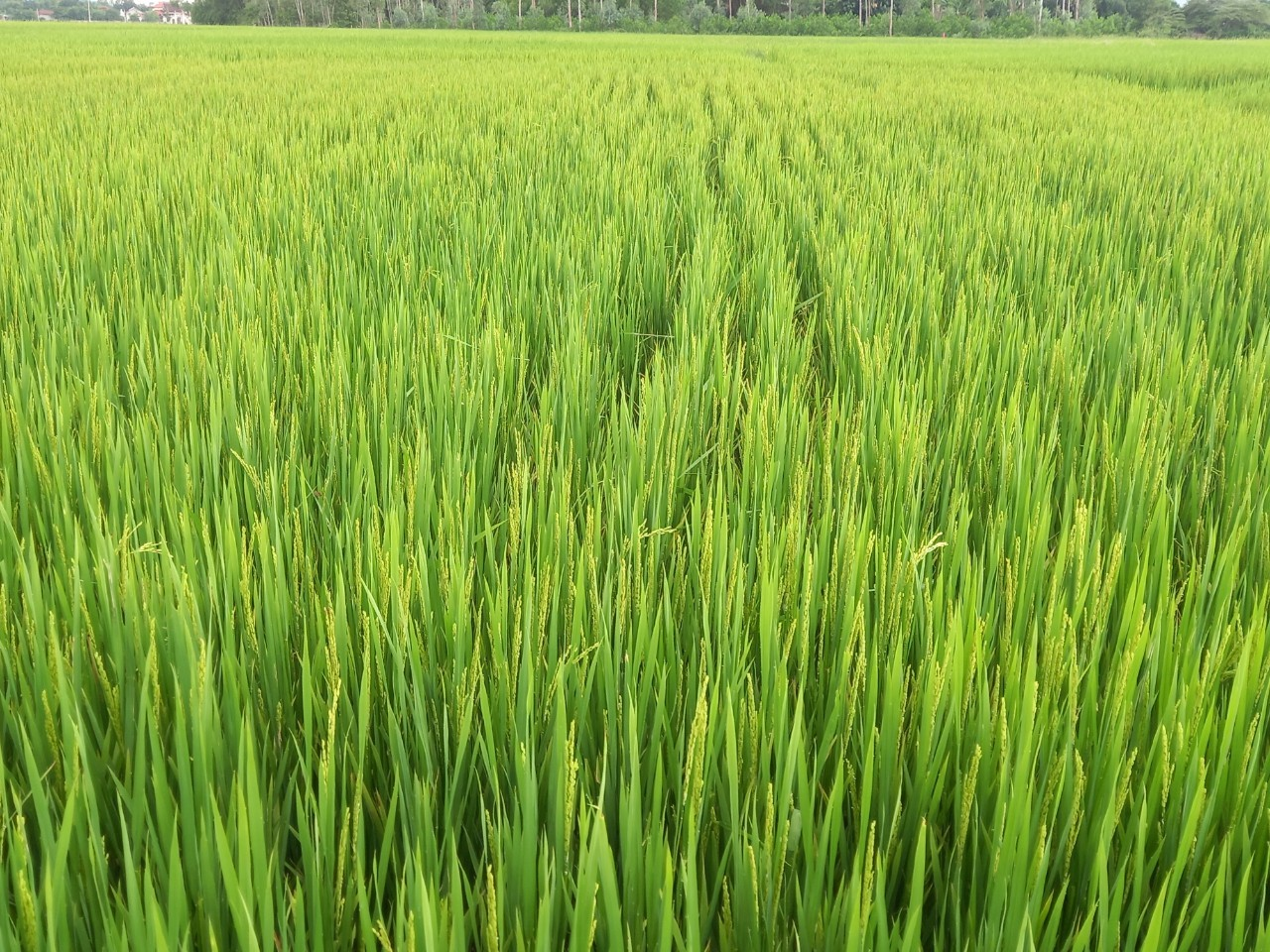 Lúa mô hình sạ cụm giai đoạn đòng trỗ. Ảnh - Nguyễn Cường